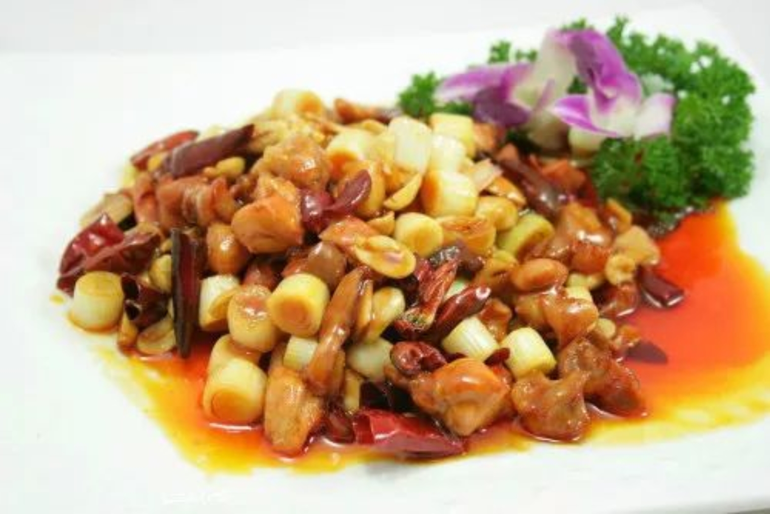 首先,为大家推出传统名菜——宫保鸡丁!宫保鸡丁的特色是辣中有甜,甜中有辣,鸡肉的鲜嫩配合花生的香脆,入口鲜辣酥香,红而不辣,辣而不猛,肉质滑脆。宫保鸡丁富含蛋白质、钙、磷、铁、维生素及碳水化合物等营养成分,具有温中益气、滋补五脏、健脾胃、壮筋骨的功效。如此简单易学,营养丰富,鲜香可口,实乃居家必备!