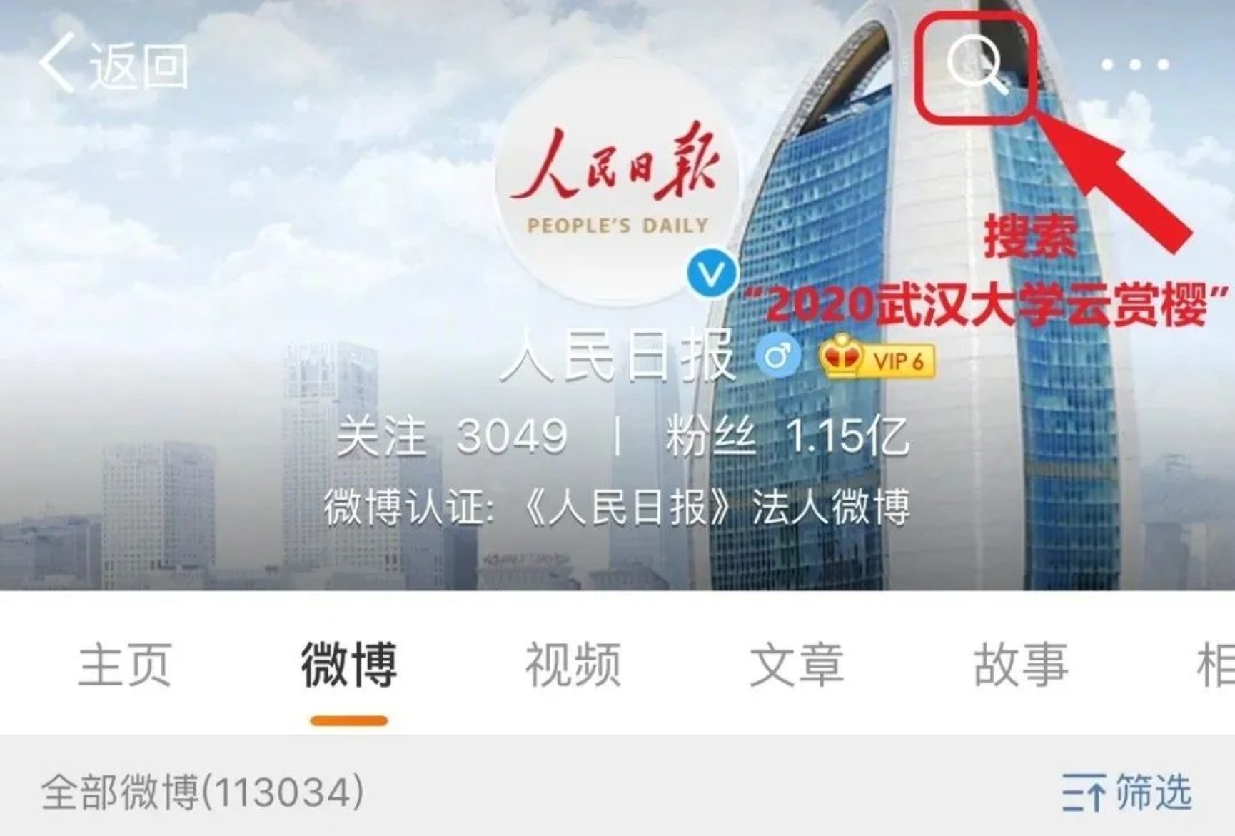 搜索“2020武汉大学云赏樱”。