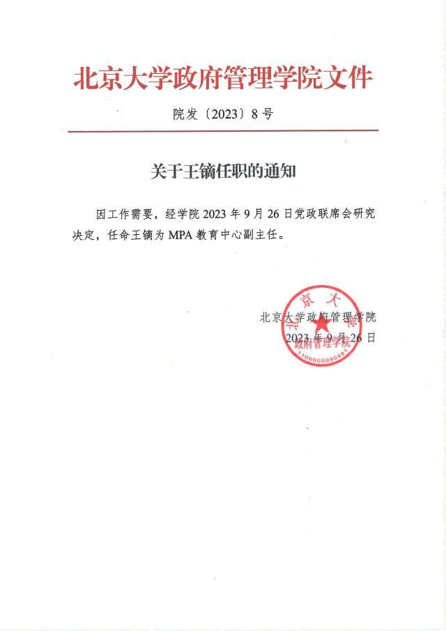 关于王镝任职的通知
