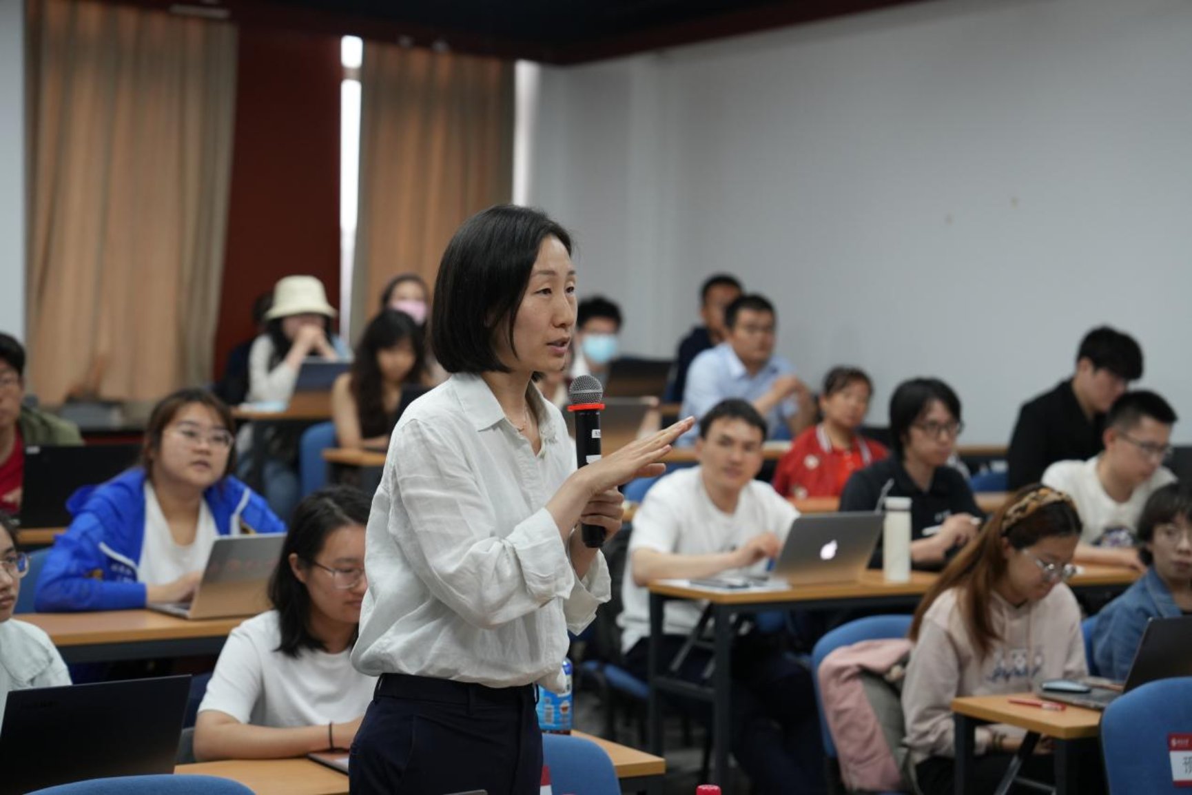 在互动环节,在场师生围绕技术使用的价值判断、区块链等新兴技术应用、政企数据合作模式、个人投身数字治理所需的知识储备等问题与贾晓丰先生展开交流,贾晓丰先生逐一进行了解答,并鼓励同学们积极学习和使用前沿技术,广泛涉猎跨学科知识并构建自己的知识体系,为推动数字治理相关研究和实践作出贡献。