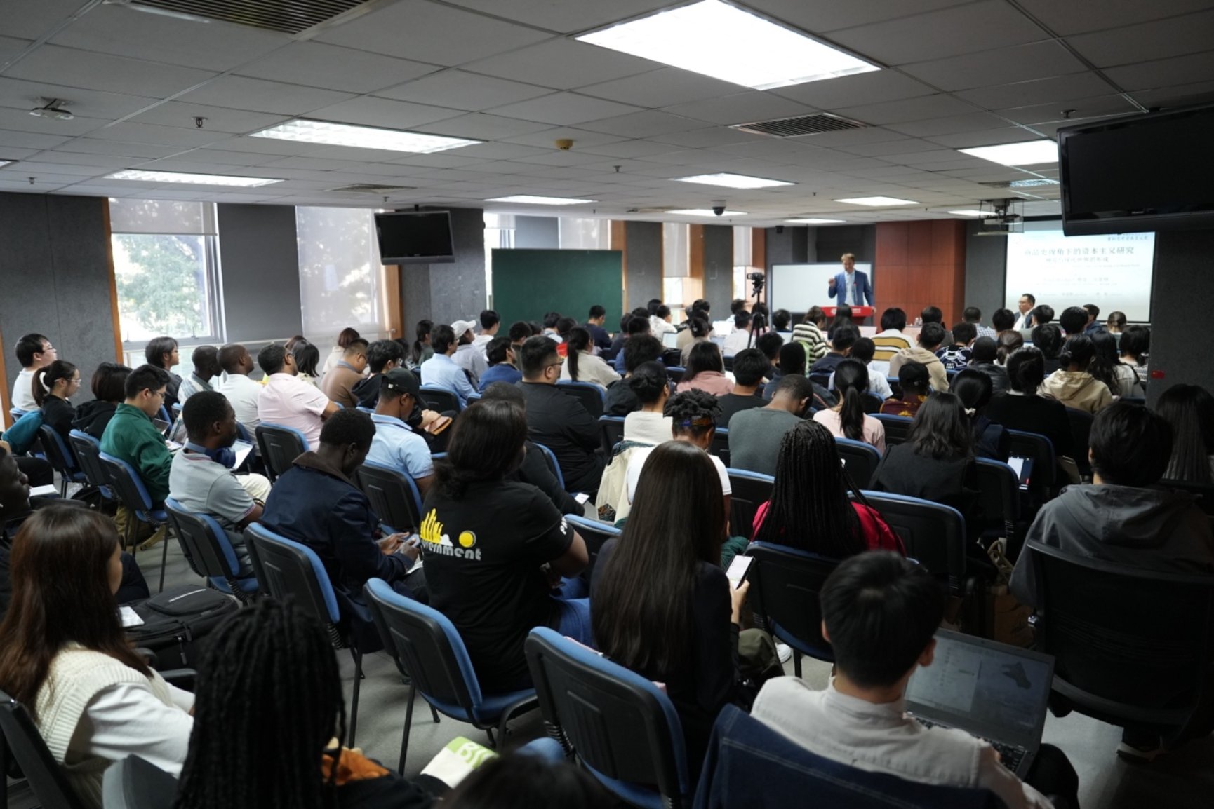斯文·贝克特教授的第一场讲座题为“地方视角下的资本主义研究:纽约市与19世纪美国资产阶级的巩固”(Studying Capitalism from a Local Perspective: New York City and the Consolidation of the Nineteenth-Century American Bourgeoisie)。本场讲座由北京大学社会学系助理教授谢雯主持,由陕西师范大学历史文化学院副教授于留振、山东师范大学历史文化学院讲师张凯成评议。在讲座开始之前,北京大学中国政治学研究中心助理教授孙宏哲对贝克特教授的到来表示诚挚欢迎,并对接下来三天的系列讲座进行了总体性的介绍。首先,贝克特教授强调了资本主义研究的重要性,他指出资本主义作为有史以来最具活力的经济秩序,其出现是人类历史上最重大的发展之一。对于资本主义的研究,不同学科、不同学派、不同学者莫衷一是,在不同历史时期纷纷提出了不同理论和解释。在历史学界,资本主义研究近年来面临着一股热潮,新兴的资本主义研究重新关注历史,结合了经济、商业和劳工史的许多研究方法,但又将历史叙述融入了关于基本经济、社会和政治变革的故事中。在此种范式中,资本主义经济秩序并非理所当然的假设,其社会和地理分布其实是一个需要研究的问题;而商人也并非追求利润的原子化个体,而是嵌入特定的社会文化和政治网络中的行动者。