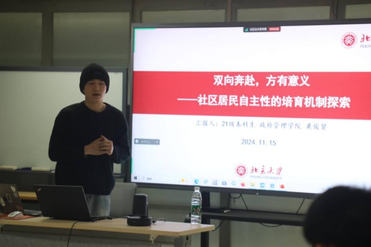 本学期共有18个科研项目参加结题答辩,包括7个小组项目与11个独立项目。科研项目主题分布广泛,涉及农旅融合、数字鸿沟、社会治理、官员行为研究、网络效应分析等多个领域,具体如社区居民自主性的培育机制探索、医保政策回应性研究、中国地方人大的双重任命、省级政府精英的职业发展路径和背景调查等。这些项目剖析案例、贴近生活,兼具理论深度、实践力度和社会温度,体现出同学们的广阔视野和时代关切。在研究方法方面,同学们综合运用多种研究方法来论证观点,如模型建构、田野调查、文献综述收集、定量和定性分析、实证观察研究、问卷调研等等,展现了严谨的科研态度和深厚的学术素养。