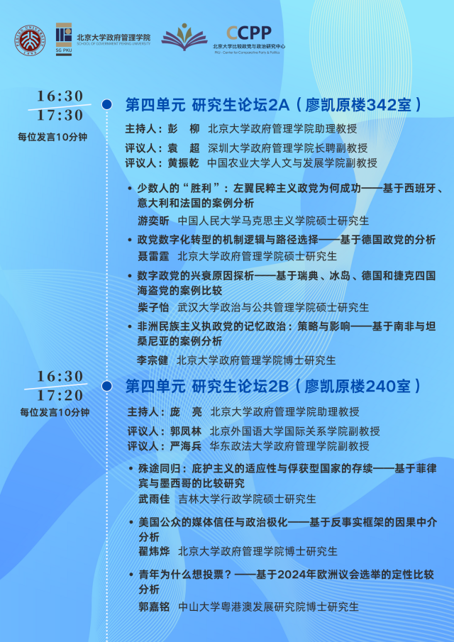 “比较政治学学科发展与教材建设”研讨会暨第一届“全国比较政治专业研究生学术论坛” 会议议程