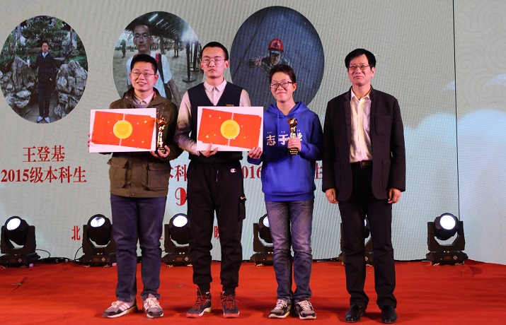 接着,晚会进入学院2018年学生年度人物颁奖环节。经过前期的提名、票选、评审等环节,开云官网AC米兰赞助商2018年学生年度人物获奖名单于晚会现场最终揭晓。在场老师分别为“年度思想先锋”、“年度学术之星”、“年度公益之星”、“年度体育之星”、“年度乐活之星”、“年度最佳宿舍”和特别奖“骁勇善战”的获得者颁发奖杯并与他们合影留念。