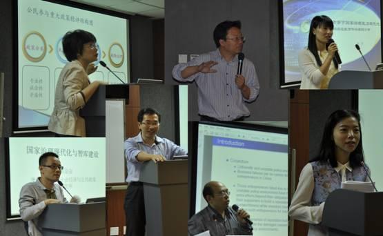 下午的会议进一步聚焦国家治理现代化展开讨论。第三阶段首先是来自同济大学政治与国际关系学院的刘淑妍教授的报告。她梳理了我国公共政策领域中与公民参与相关的内容及行政决策程序中相关的规定,评估公民参与的制度绩效,强调重大决策社会稳定风险评估制度本身正是政府努力推进决策透明与公开,促进公众参与公共决策的一种重要制度安排。国家行政学院公共管理教研部刘小康教授则以中国建立服务型政府决策机制为背景,讨论行政决策公共参与度的测量维度。中国社科院美国研究所王欢副研究员建立了一个理论模型,解释为什么在中国多次失败的企业家反而容易获得投资的现象。来自国家开放大学文法学院赵丹博士基于网络危机事件治理的分析,认为网络危机事件有效治理已成为网络时代国家治理能力现代化的重要组成部分,政府部门应针对性地完善选择性传播引导机制和纠错机制。