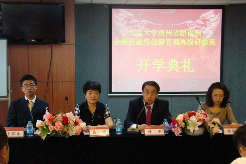 学院院长助理郁俊莉教授致辞,她提出学习的目的是为了更好地为国家、社会做贡献,希望研修班学员能把北京大学胸怀天下的责任意识带到工作岗位上。她指出,贵州省在中国新一轮产业升级中处于领先地位,希望其在新型城镇化建设和未来高科技产业转型中,引领金融创新潮流。另外,她还表示本次金融研修班是一个教学相长的过程,双方互相学习,共同进步。