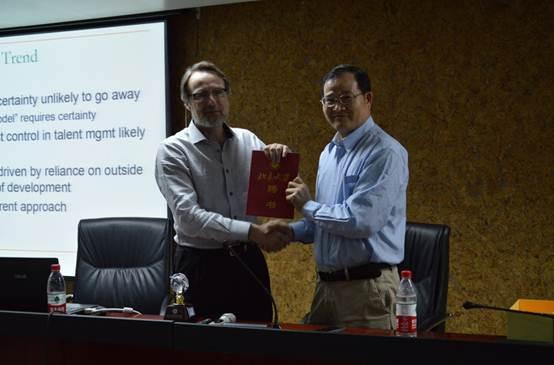 萧教授向Cappelli教授赠送人力资源开发与管理中心研究员聘书