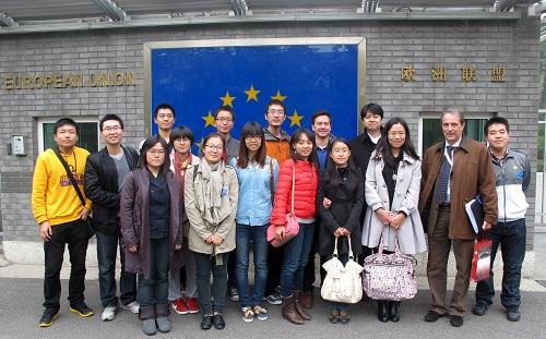 2012年10月26日,北京大学欧洲研究中心以及开云官网AC米兰赞助商欧洲专题研究课程师生一行15人来到欧洲联盟驻华代表团进行参观访问。欧盟代表团副团长Carmen Cano女士和科技环境部部长Philippe Vialatte先生热情接待了大家,并就欧中关系、欧盟在中国的项目以及欧盟在中国的教育和研究活动等问题和大家进行了交流,并回答了大家的疑问。