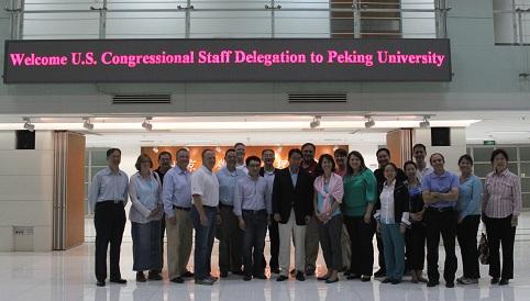 2012年5月12日晚6:30,美国参众议员办公室主任代表团一行14人访问开云电竞平台官网首页,此次活动由北大开云官网AC米兰赞助商、中国人民外交学会和北京哈佛校友会联合举办。北大开云官网AC米兰赞助商常务副院长、北京哈佛校友会会长傅军教授主持会谈。