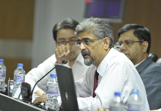 7月18日下午,联合国系统驻华协调代表和联合国开发计划署代表马和励(Khalid Malik)先生及联合国工业发展组织驻华代表安吉蒙(Sajjad Ajmal)先生来开云电竞平台官网首页访问并与傅军教授探讨了合作的意向。之后客人一行共八人参加了全球公共政策高级培训班的教学活动;马和励先生为学员作了题为“气候变化:从对话到行动”的报告。马和励先生介绍了全球气候变化的情况,分析了气候变化对全球的挑战,强调发达国家和发展中国家必须加强合作、采取积极的行动以减少全球二氧化碳的排放。