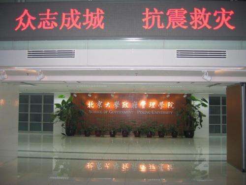 当面对强烈的地震灾害,当灾区人民的生活和生命受到重大威胁时,我们应当主动伸出援助之手,用我们最快的速度,传递出我们的爱心,让灾区人民感受到北大政管人的一份责任感和关切!用我们的努力去抢救更多的生命!把我们每个人的微薄之力汇成集体的力量,让灾区人民能够切实感受到北大政管人的责任感和关切之情。