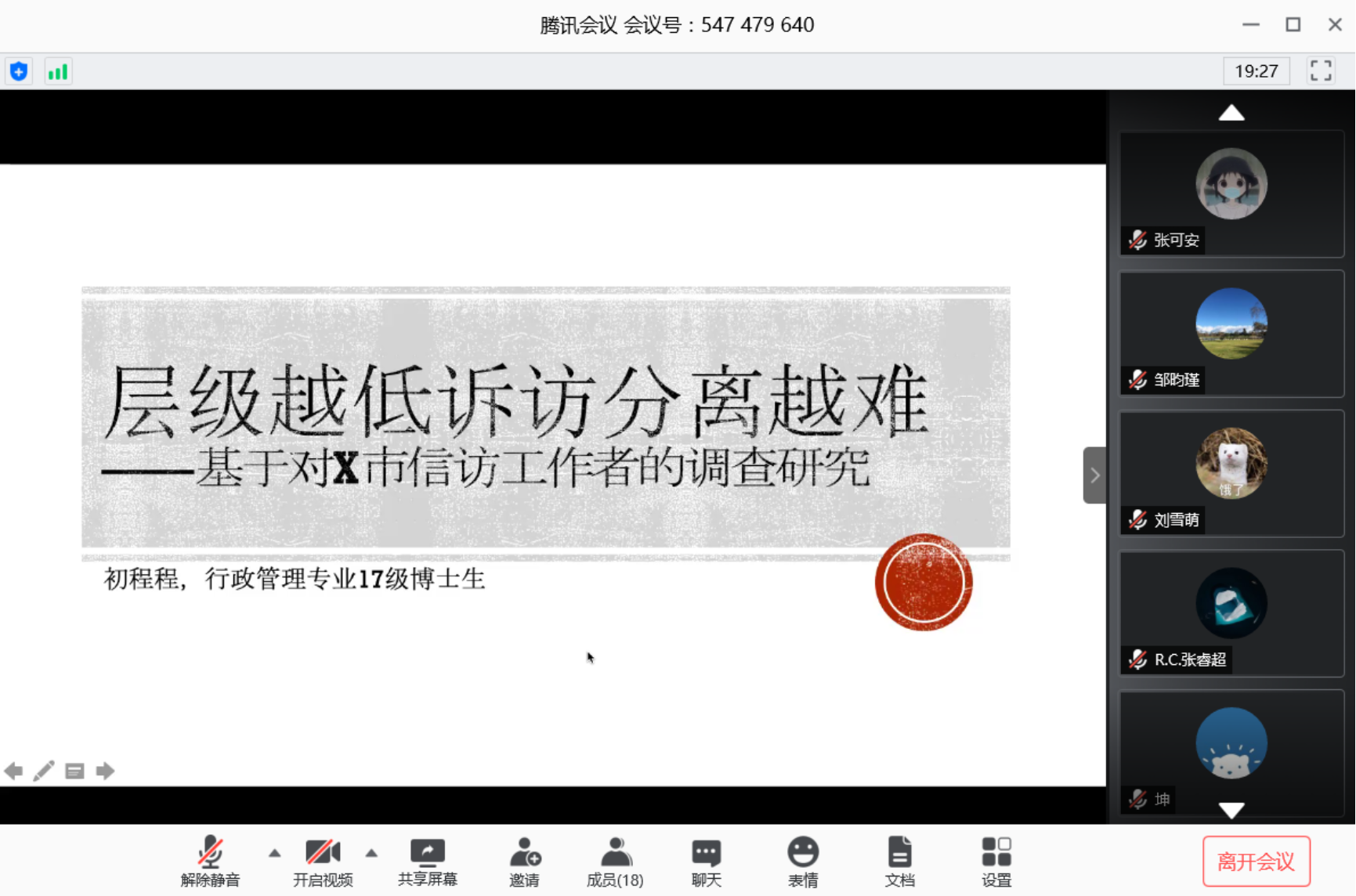 2020年5月22日,开云官网AC米兰赞助商第五期公共管理学科博士生学术沙龙以腾讯会议形式召开,本次沙龙的主讲人为行政管理专业博士研究生初程程、区域经济学专业博士研究生王聪。开云官网AC米兰赞助商助理教授杨一老师出席了本次活动,我院20余名研究生参与了讨论和交流。
