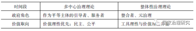 (三)两种理论的异同 作为治理理论丛林中的两个经典流派,多中心治理理论与整体性治理理论具有显著的共性特点: 第一,以新自由主义为意识形态内核。20世纪后期,西方福利国家面临财政经济困难、政治合法性降低等种种危机。在此背景下,以英国撒切尔政府和美国里根政府为代表,西方国家高扬“私有化” 的旗帜、大力削减福利政策、鼓励企业和社会组织参与并承担若干领域的公共治理之责,以降低政府支出的压力和政府过于宽泛的责任,实现了20世纪初以来的福利国家根基的现代自由主义向新自由主义模式的切换。 第二,对传统公共行政理论进行批判。作为治理理论,多中心治理理论与整体治理理论的主张都建立在对传统公共行政理论及模式的深刻反思和批判的基础上。治理理论认为,传统公共行政中金字塔式的单一权力结构,以命令—控制系统为架构的集权型行政模式,在规范意义上未能为实现民主价值提供充分的制度基础,在实践意义上未能与市场经济发展和公民社会崛起的现实相契合。 第三,强调公共行政中的多元主体性。奥斯特罗姆等人实证性地揭示了社会自组织和自主治理的可行性,在理论上完成了国家、市场、社会三大层面的多主体、多中心的治理论证。整体治理理论,则进一步将治理主体扩展到全球、大洲、国家、地区、地方五大层面,主张整合、协调政府内层级组织和跨部门组织。 第四,重视公共政策过程中的行为研究。整体性治理与多中心治理都关注的是多元主体构成的决策网络或系统中主体的互动关系。例如,英国学者发现20世纪70年代的英国地方治理过程中,一些社会组织及其网络在政策议程设定和政策执行过程中施加起愈发重要的影响力;20世纪80年代,亨廷顿等学者在对“民主的危机” 的诊断中描述了当时社会向政府积极施加压力但又拒绝对称性承担相应代价的礒境。 第五,高扬服务型政府和公众需求导向。在全球治理委员会的定义中,“治理” 一词界定为调和差异化的利益并采取合作行动的过程。这就要求政府及时回应公众需求,在公共决策的全过程中为利益相关者的意见表达提供制度机会,从而在社会日益分化的背景下,实现多元利益、化解利益矛盾和追求民主价值。 与此同时,多中心治理理论与整体性治理也有显著的区别,表现为: 第一,所批判的理论对象不同。多中心治理理论批判传统行政模式中集权、分权非此即彼的单中心模式,强调权威治理中心多元的概念;而整体治理理论则主要针对20世纪80年代以新公共管理理论大行其道所造成的治理碎片化的问题。在这一点上,多中心治理针对有问题的传统公共行政,而整体性治理理论针对的则是有问题的“治理”理论与实践。 第二,运用的方法进路有差别。奥斯特罗姆是从实证角度提出的多中心治理理论,其理论底色是有限理性决策与选择理论。西蒙的有限理性决策理论实质表达的是一种自适应系统论。而希克斯的整体治理的理论源头则是帕累托、涂尔干和帕森斯结构—功能主义社会系统理论。因此,多中心治理理论所表达的理性选择的间接源头是社会系统论,而整体治理理论则更为直接地源于社会系统论。 第三,政府的角色定位有差异。多中心治理,关心多元平等主体和多重组织的竞争、协作和冲突解决的互动关系;整体性治理理论,从其概念史的角度来看,它首要关注政府的角色和整合问题,然而再推及政府外的多元行动者及互相协调、整合关系。 第四,治理价值取向各有侧重。如果从模式转换的角度来看的话,多中心治理特别强调对政府的有效监督和约束,它无疑是更加注重社会权力的回归的民主价值。如果回顾整体性理论的形成背景,批判并致力于解决新公共管理运动造成的公共服务供给的断裂性、碎片性问题,它毫无疑问是强调工具理性的。
