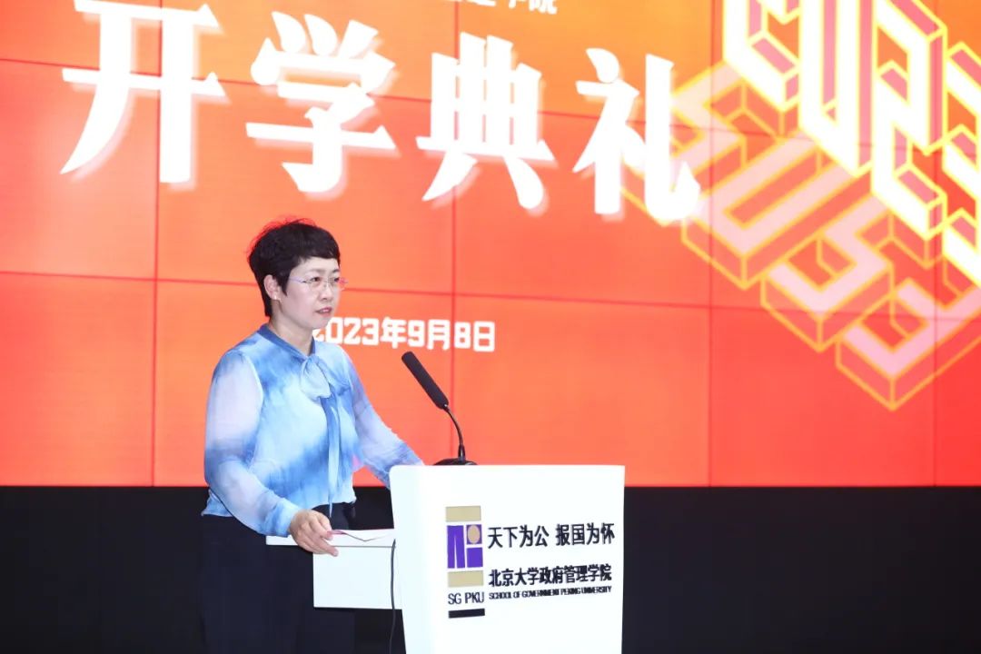 在播放暖心的开场视频后,开学典礼拉开帷幕。2023级本科生姜芦珊作为新生代表发言,她援引燕继荣院长的话语,表达了作为政管新人,立志勇担时代使命,以政治学、公共管理学的视角去关照世界,钻研学问、理性辨别、深刻思索,为国家和世界的发展贡献力量的信念与信心。