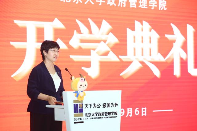在欢快有趣的开场视频之后,开学典礼拉开帷幕。2024级本科生张清优作为新生代表发言,她分享了自己初入燕园的感受,表达了作为政管新人,关注公共领域、传扬政治文明的坚定决心,希望与同学们一道在北大这片土地上自由探索,沉潜学术品格、厚植家国情怀、勇担时代使命。