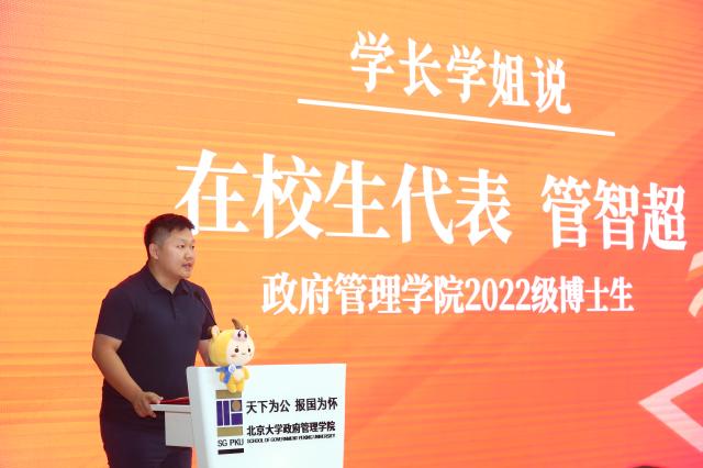 2024级博士生班班主任、城市与区域管理系助理教授张洪谋代表学院教师发言。他提到,2007年他作为新生入学时,尽管面临挑战,但北大的包容和支持帮助他找到了前进的方向。他鼓励新生认真对待专业课程,拓宽视野,积极参与学术研究,并珍惜校园生活的每一刻,建立与老师的深厚联系。“你的每一个明天,都有我深情的祝愿”,张洪谋老师用《永远》这首歌曲祝福大家即将到来的北大之旅无忧愉快。